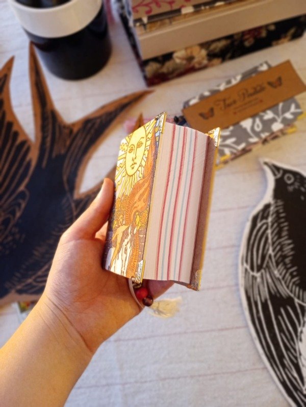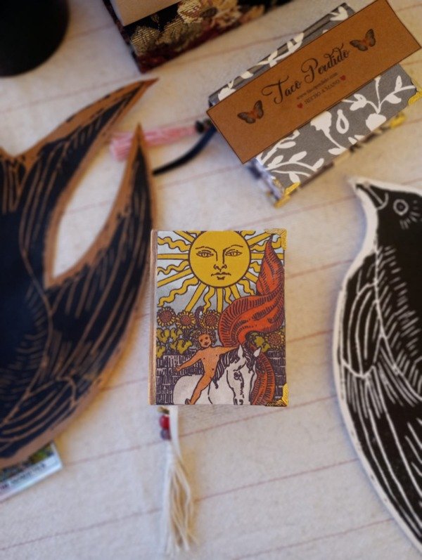 tapa dura forrada en papel impreso con la carta El Sol